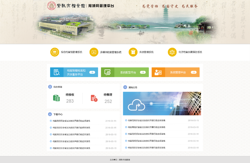 在“智慧常熟”的建设中,常熟市档案馆深刻意识到智慧档案馆是智慧城市不可缺少的一部分。信息发展充分运用云计算、物联网、大数据等技术,实现对常熟市档案馆当前硬件、软件平台做相关的智能化、数字化改造,构建档案智慧收集、智慧管理、智慧利用、智慧保存平台。