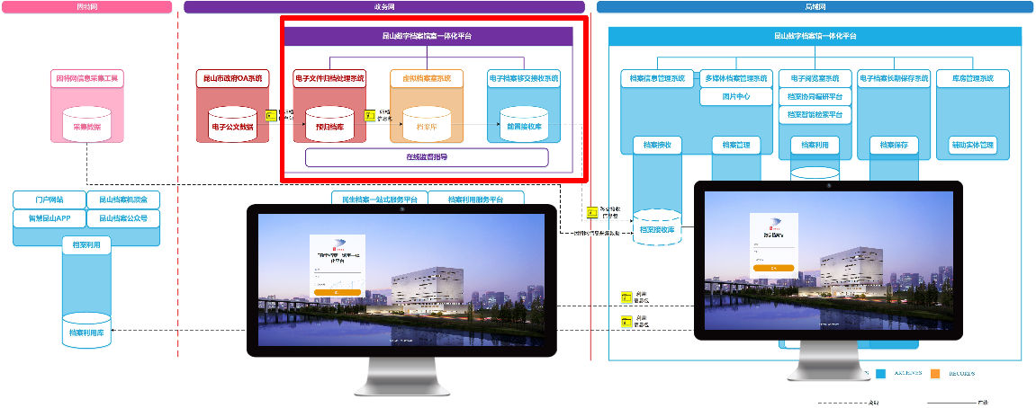 百尺竿头更进一步,在已有成绩之上,昆山市档案馆按照国家档案局测评指标要求,对数字档案基础设施、业务用房、软硬件系统进行了全面升级,对数字资源进行多轮清洗,以完善各项业务系统功能,全面建成了“数字档案馆一体化平台”和“数字档案馆室一体化平台”,实现了本馆内档案的收、管、存、用,实现了覆盖全市立档单位和各区镇政务服务中心的三级联动,实现了门户网站、APP、公众号等多渠道的开放档案查询和利用。