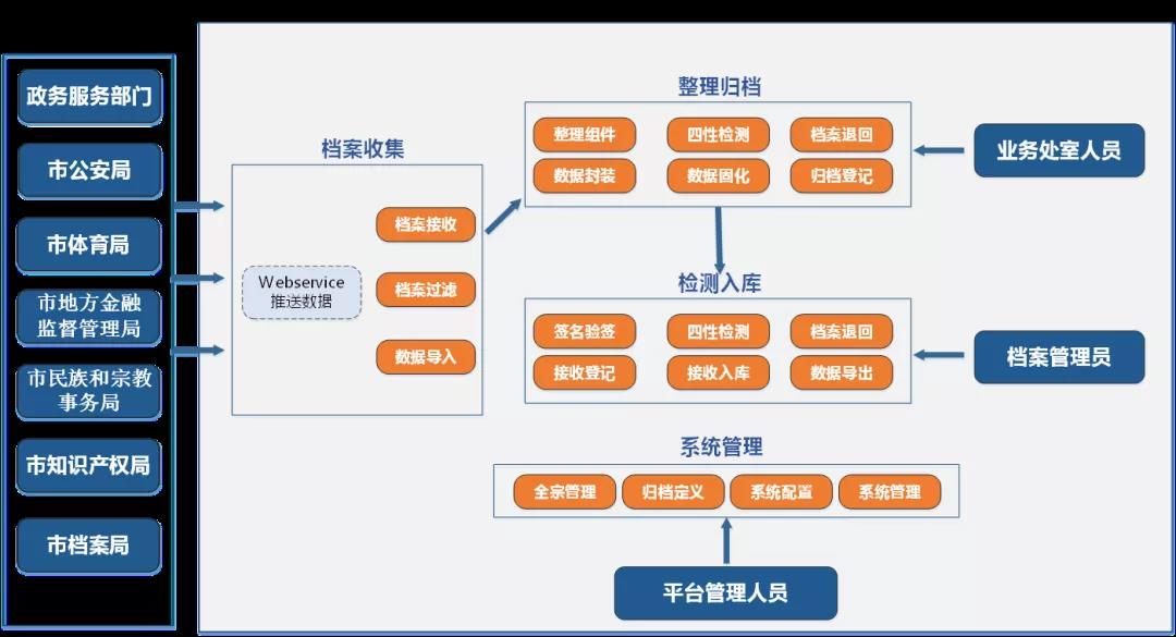 电子文件归档子系统依托“一网通办”平台实现归档申请、归档检测、归档处理、归档设置、归档查询等功能。