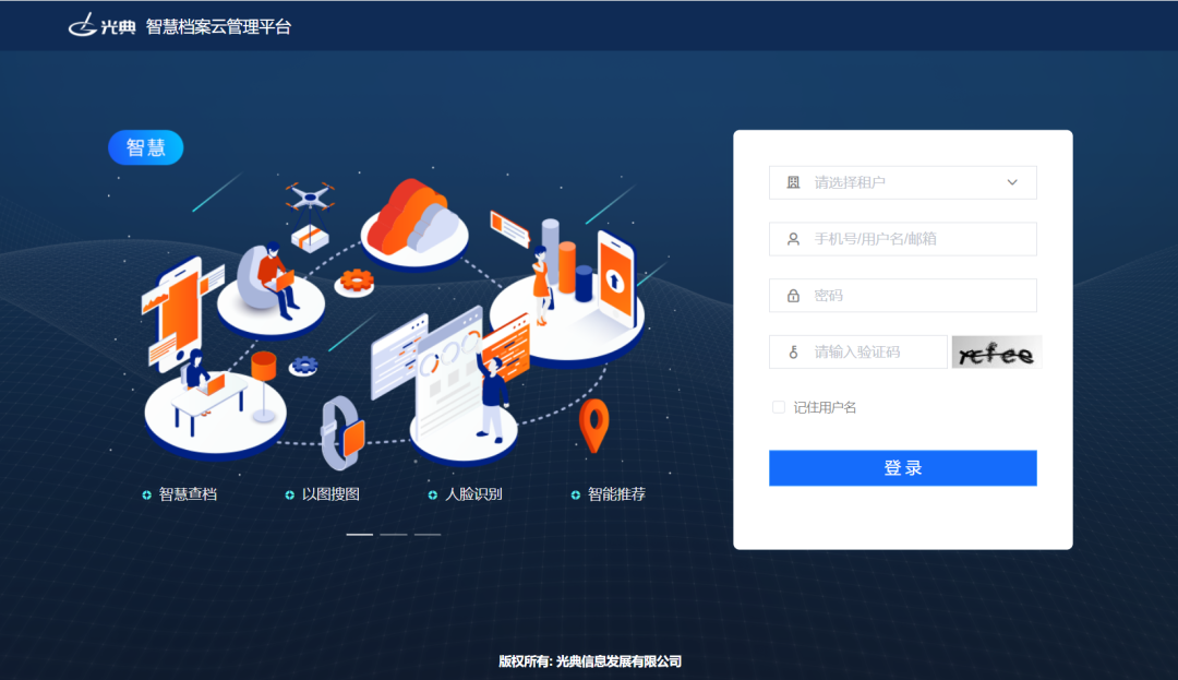 光典智慧档案云管理平台(以下简称“光典V8”)——基于云原生技术的档案的知识管理和应用平台。它是以微服务为架构基础,SaaS多租户模型为设计理念,通过Docker、容器编排、DevOps为持续交付模式,实现电子档案数据的一体化收集、可视化管理、可靠保存,提供智慧、安全、专业的档案一体化服务智能系统平台。